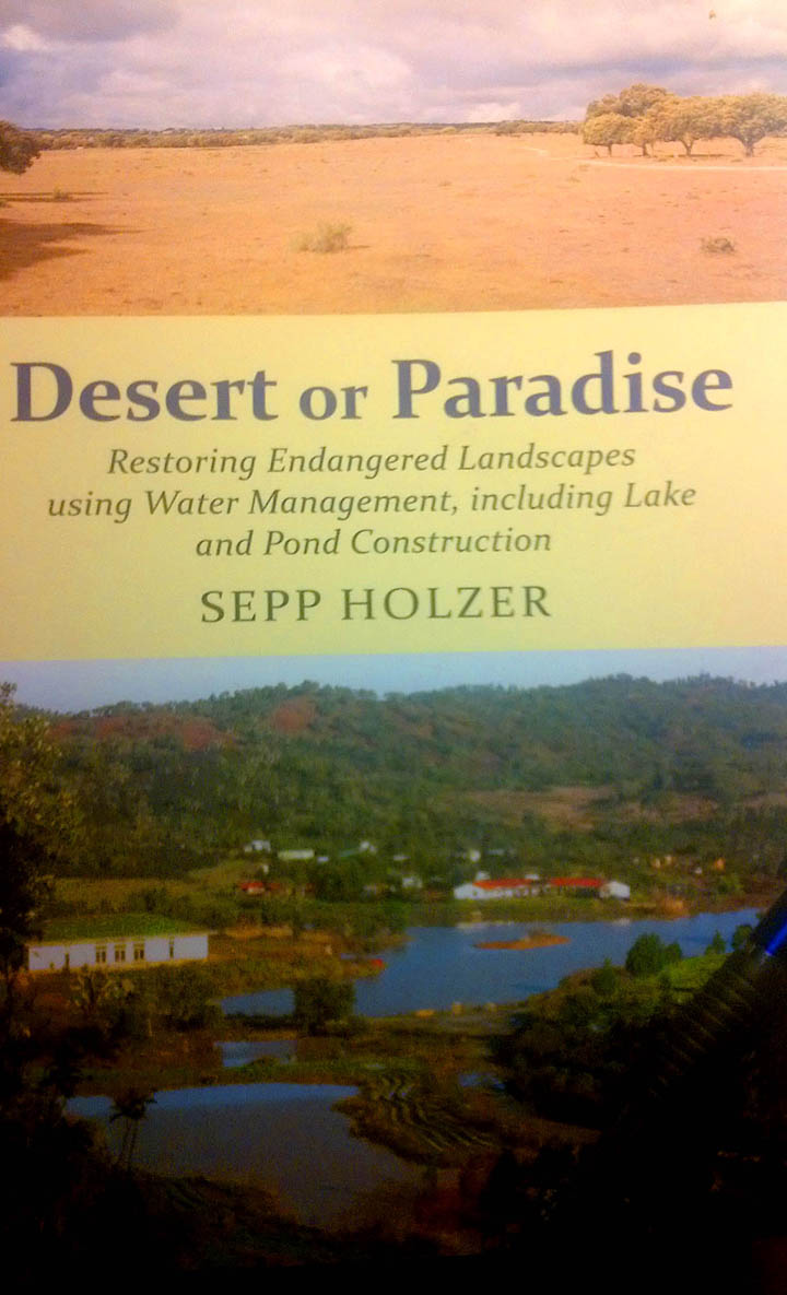 One of his books DESERT OR PARADISE about “Restoring Endangered Landscapes using Water Management, including Lake and Pond Construction” was mentioned and I knew straight away that this was it, that was what I needed to get stuck in to get all the information necessary for our project.