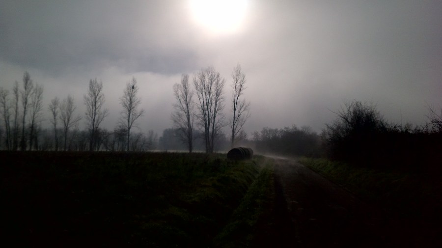 A thick fog this morning when I open the shutters. The air coming from the window is not cold even though it’s February. It reminds me so much of Ecuador when we got up that first morning in the middle of the jungle. The mist was everywhere and we could just about distinguish the river …