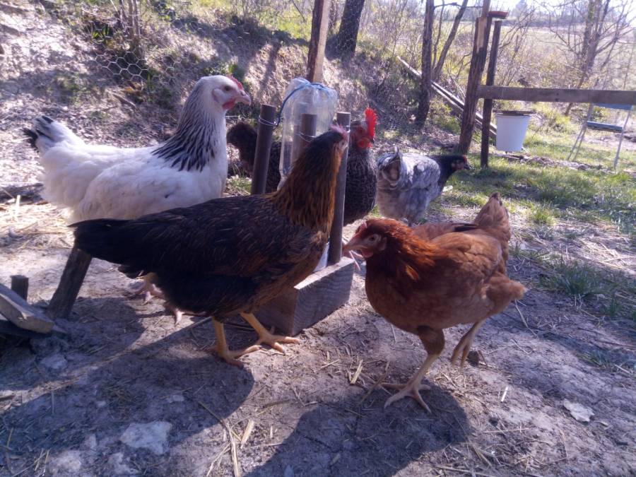 March 30th- The girls have been here one week. They have settled and one little one, the smallest one, is giving us an egg every day. The others are busy with other things. They have not been using the ladder to come out in the morning, they have been flying down. The egg layer goes …