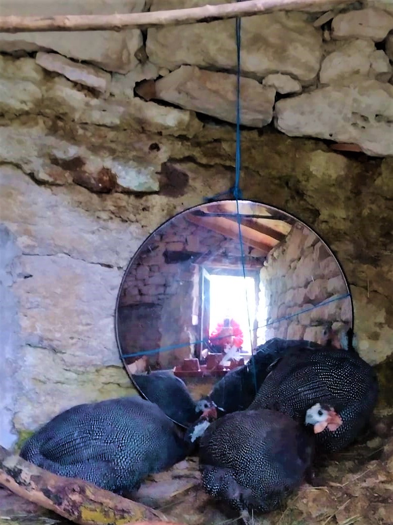 Depuis ce matin cinq pintades bien timides explorent leur espace dans une annexe préparée pour elles la semaine dernière. Dans le temps il y avait là des canards et des oies, m’a dit Monique. La pièce fait à peu près 4 mètres carré, le toit en pente à une petite fenêtre grillagée que l’on a …